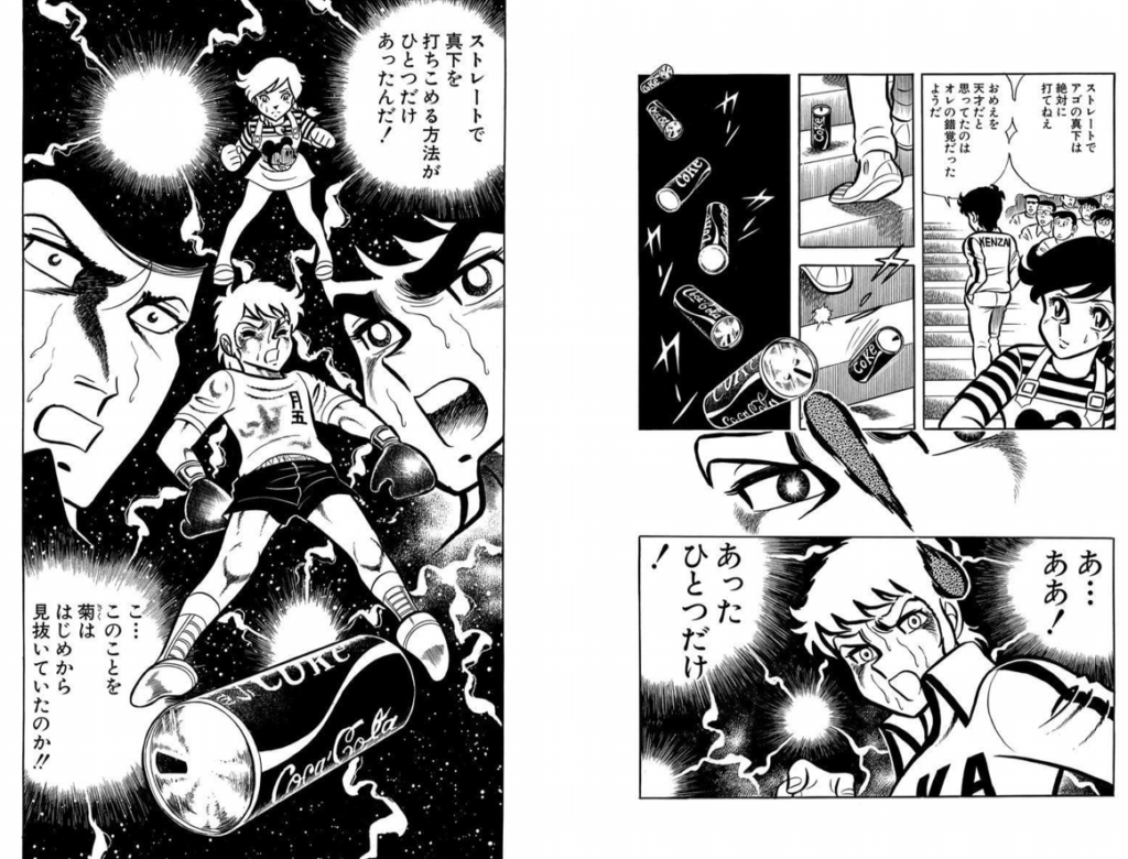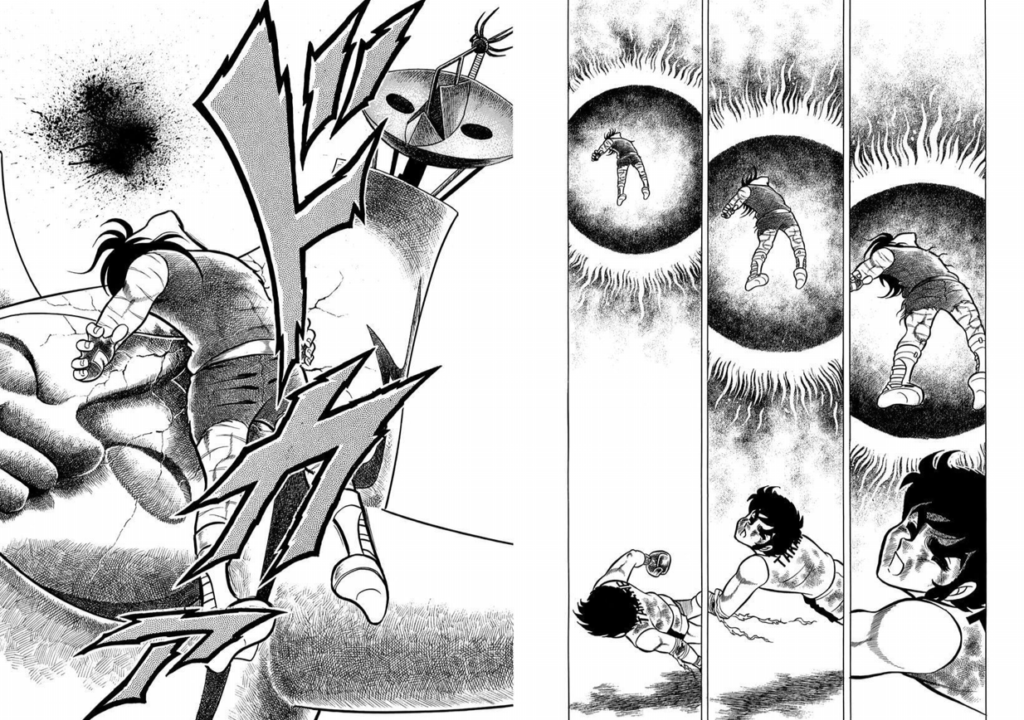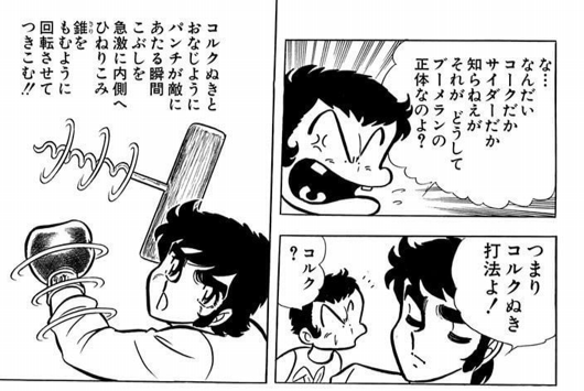 例えばチャンピオンカーニバルで初の必殺パンチが登場するわけですが、いきなりギャラクティカマグナムが炸裂して、パンチを食らった相手が体育館の窓ガラスをぶち破って場外に飛んでいったとしたら、あまりの急変ぶりに読者はドン引きしたと思うのですよね。しかし実際に登場したのはブーメランフックとローリングサンダーという「練習すれば何か自分にも打てそう」と思わせる、多少現実味を帯びたものでした。