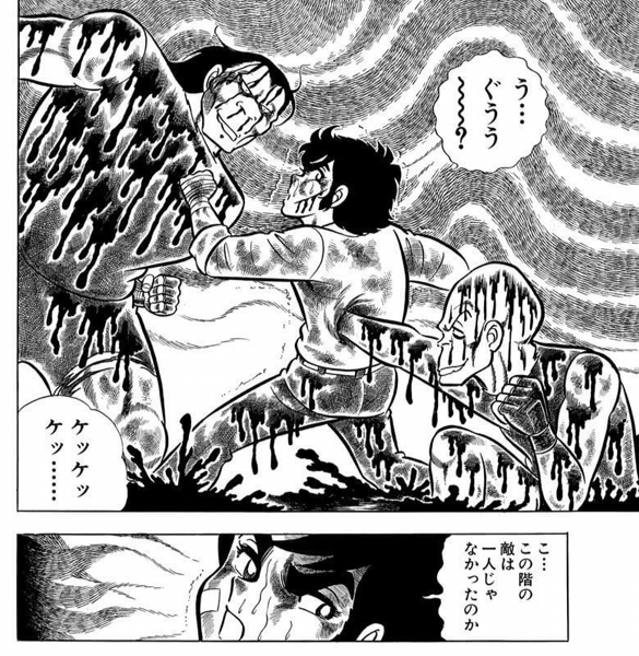 加えて「どんなパンチなのか何の説明も無くただパンチ名を叫ぶだけ」の影道雷神拳も登場。極めつけは、太陽の塔までおそらく数百メートルは吹っ飛んでいるであろう影道総帥・・・ここで路線変更はほぼ完了したと言っていいでしょう。