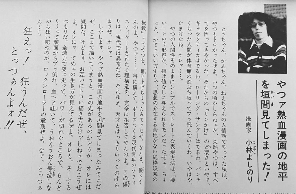 「とうちゃん、かあちゃん、ねえちゃんの人情話でやってた頃は、やつもトロかったぜよ」とは、かのゴーマニズム宣言の小林よしのり先生によるコミックス第18巻の巻末寄稿です。たしかにこの路線変更によって読者アンケートの人気順位は急上昇し、「集英社ビルが改装できたのはリンかけ人気のおかげ」と言われるほどの人気作品に成長したのは間違いのないところでしょう。